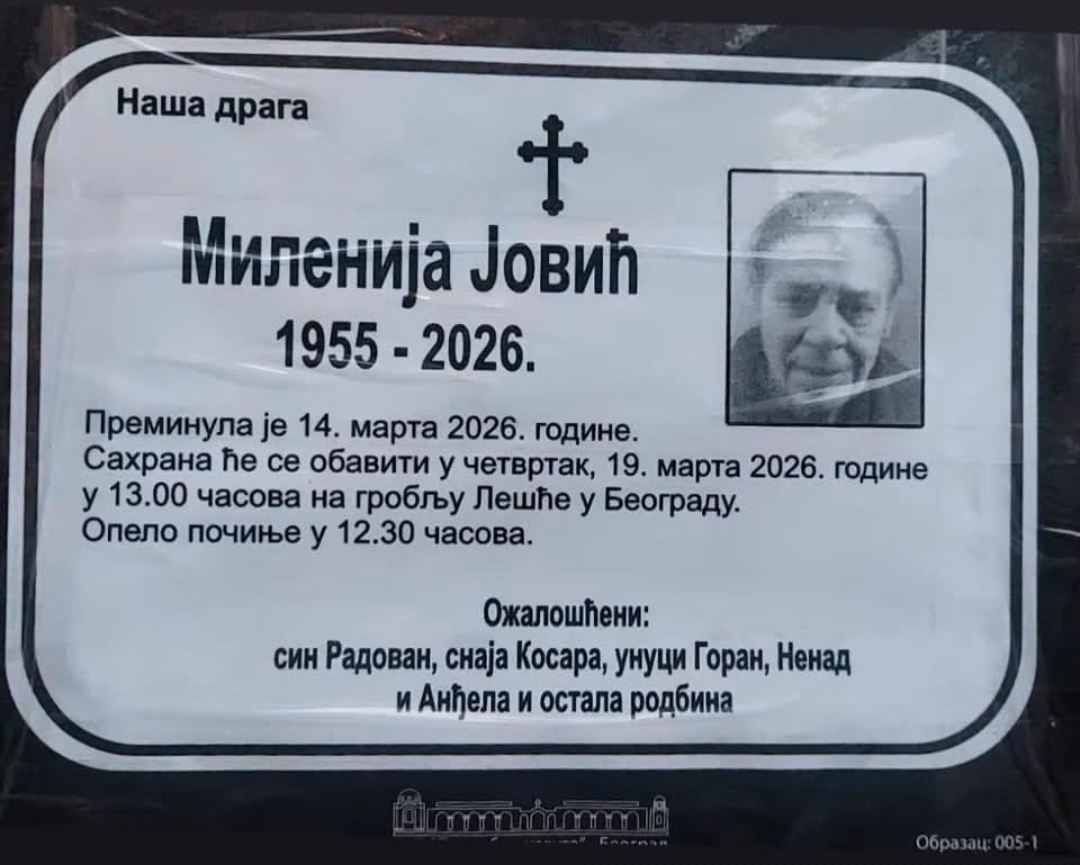 Комшије са Врачара опростиле су се од своје дугогодишње комшинице Мице (Миленија Јовић), која је преминула 14. марта 2026. године, у 71. години живота.