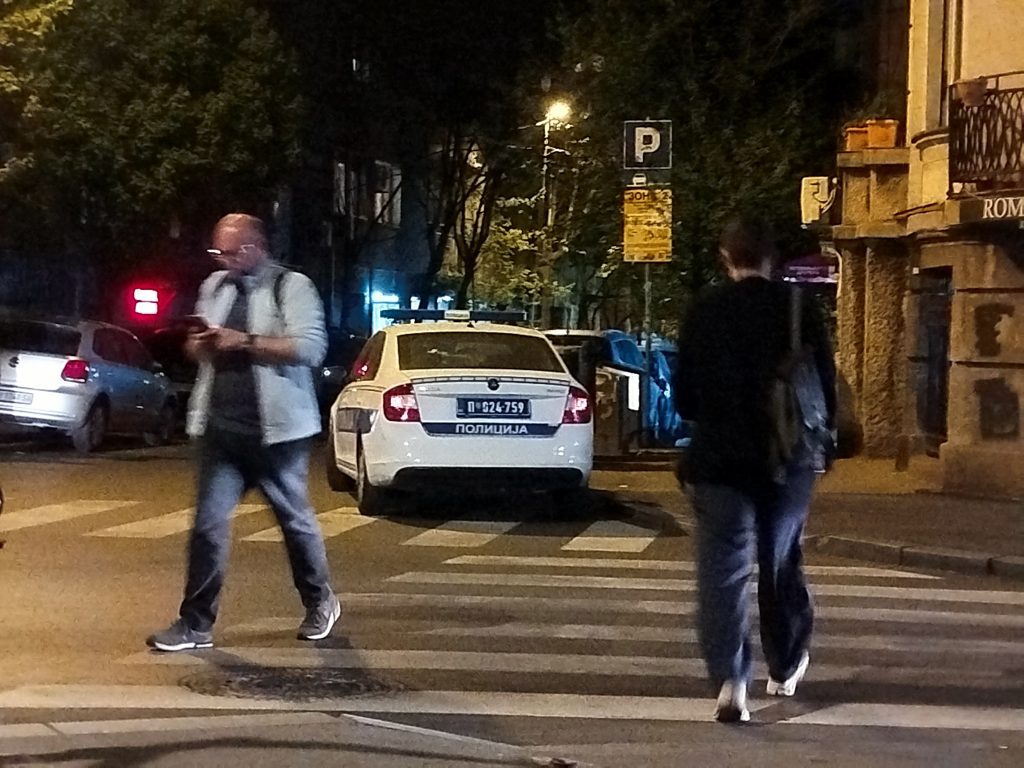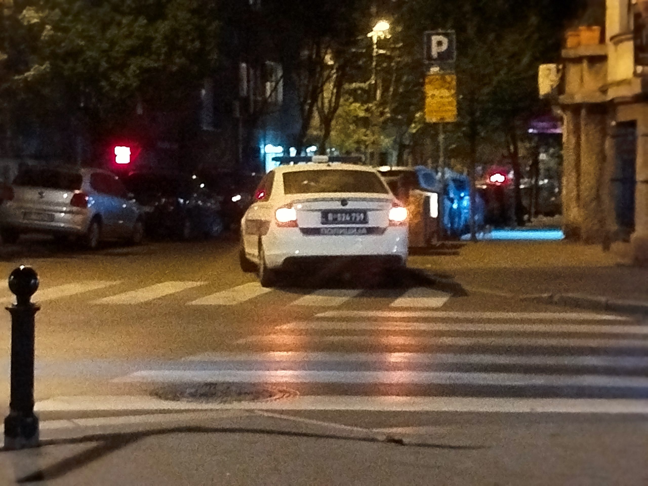 Šta je zabeleženo: policijsko vozilo parkirano preko dva pešačka prelaza sa uključenim plavim svetlima